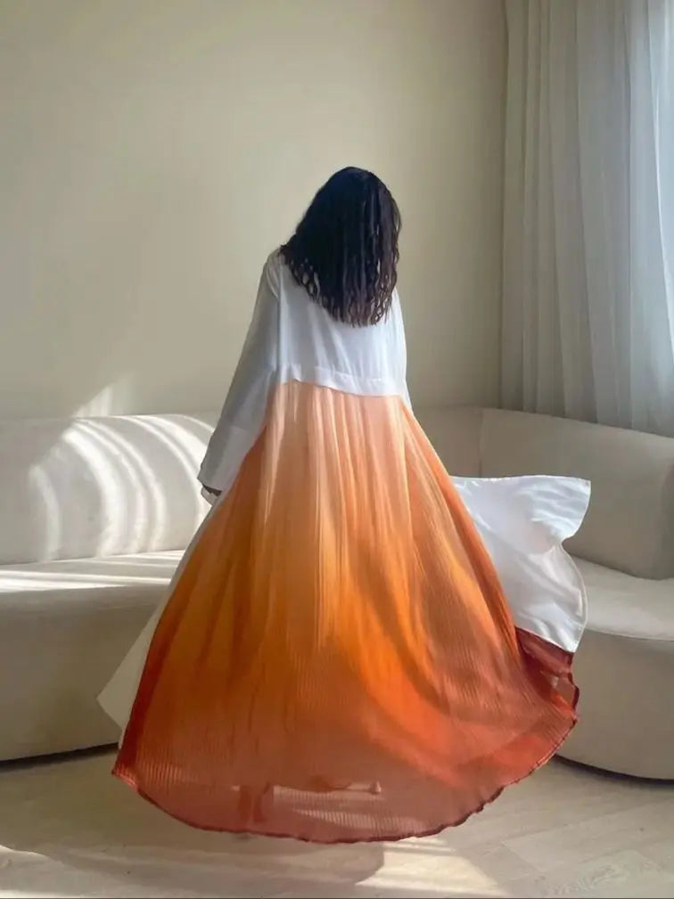 Découvrez l'élégance printanière par excellence avec notre collection exclusive Oasis de Printemps, et notamment la sublime abaya kimono ouverte aux teintes rafraîchissantes de vert et d'orange. Plongez dans une oasis de style grâce à ses caractéristiques clés :