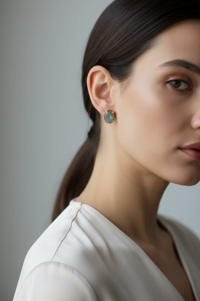 Add a touch of elegance with these oval-shaped stud earrings, Gold Plated Copper and faceted natural stones. Perfect for women who love minimalist, refined, and meaningful jewelry.