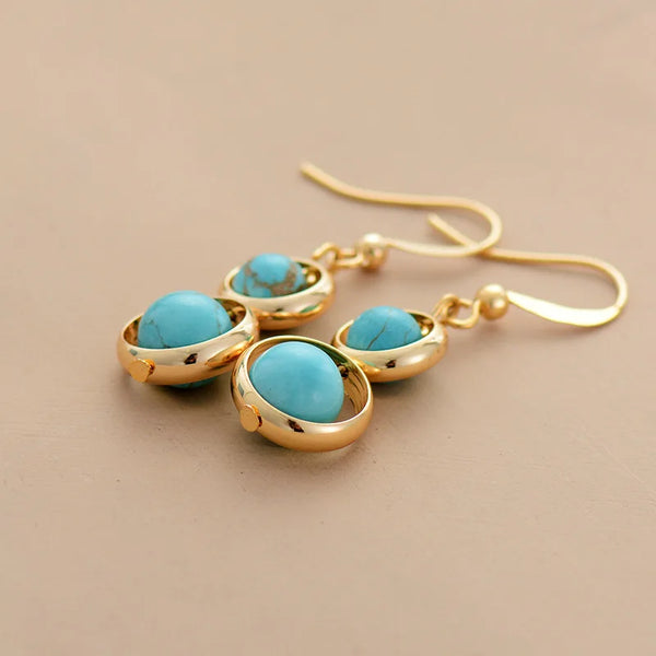 Elevate your style with the TurquoiseTwist Earrings, crafted in gold-plated metal and featuring natural Turquoise stones in a chic hoop dangle design. Perfect for women who love boho elegance with a touch of natural energy.